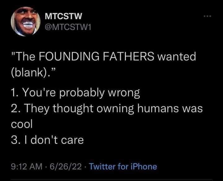 **That is the foundation of a country whose police force was formed from runaway slave patrols. Who are still actively murdering the Black population under the guise of "law enforcement". But who makes the laws when there's systemic disenfranchisement of the Black community?