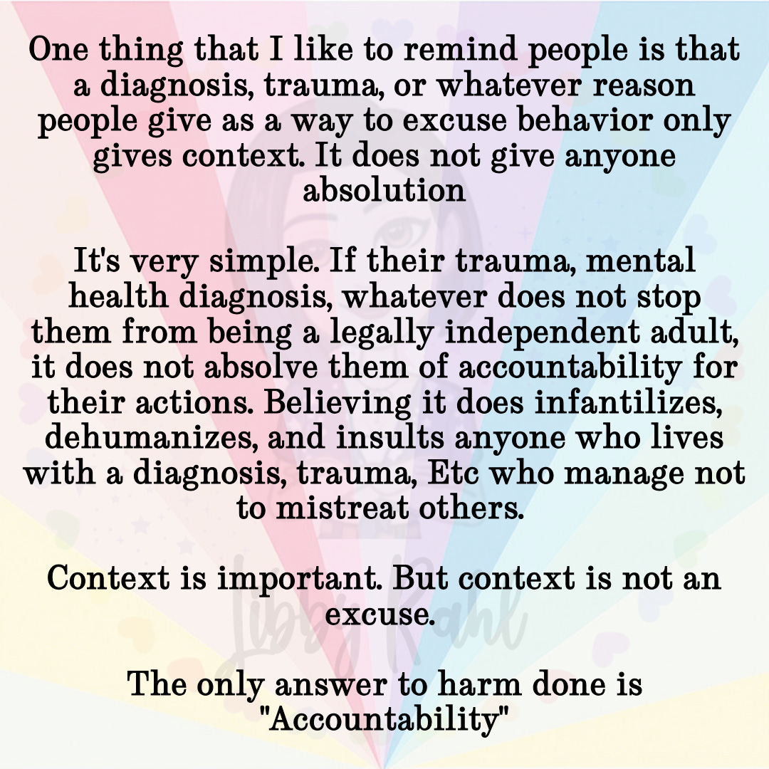 Tourette's doesn't make you not give a shit about your impact- your personality and your choices and your values do. Tourette's doesn't make you not apologize. Tourette's doesn't make you not take accountability and full responsibility and make reparations for what you did.