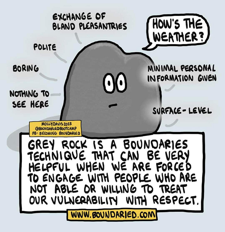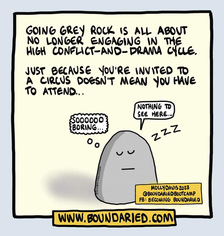 on me anymore. by the 3rd "Grey rock" response, I didn't even tense up when I saw his chat pop up. I just giggled, sat back, and waited to see what he would do